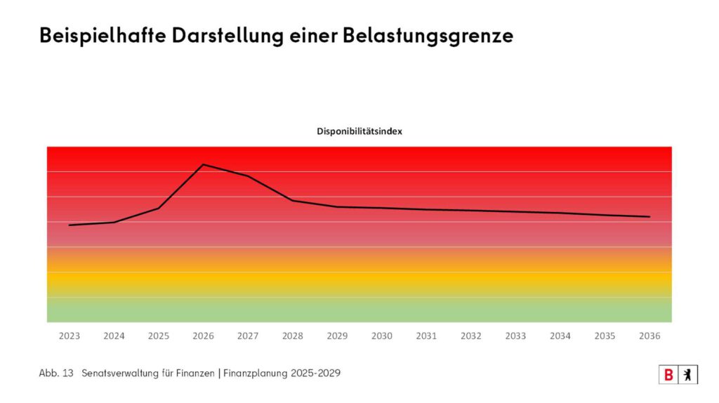 Sozialausgaben machen mittlerweile fast ¼ des Gesamtetats aus und steigen dynamisch an. Die Niedrigzinsphase aus dem vergangenen Jahrzehnt „wächst“ nun endgültig aus dem Kreditportfolio des Landes, welches jährlich mit ca. € 6 Milliarden umzuschulden ist, zusätzlich zur Neukreditaufnahme. Dies bedeutet einen Anstieg der jährlichen Zinsausgaben von ca. € 300 Millionen p.a. Zusammen mit der Lohndrift im öffentlichen Dienst, welche durch die jüngste Rechtsprechung des Bundesverfassungsgerichts noch befeuert wird, werden so alle jährlichen Mehreinnahmen mehrfach durch steigende Ausgabeverpflichtungen aufgezehrt. Lakonisch stellt der Senat dazu fest: „Es bestehen signifikante fiskalische Risiken, denen noch keine hinreichende Resilienz des Berliner Haushalts gegenübersteht.“ Vielmehr bewegt sich der Haushalt bereits heute im Bereich seiner Belastungsgrenze. Was der Senat selbst in seiner Planung aufzeigt.